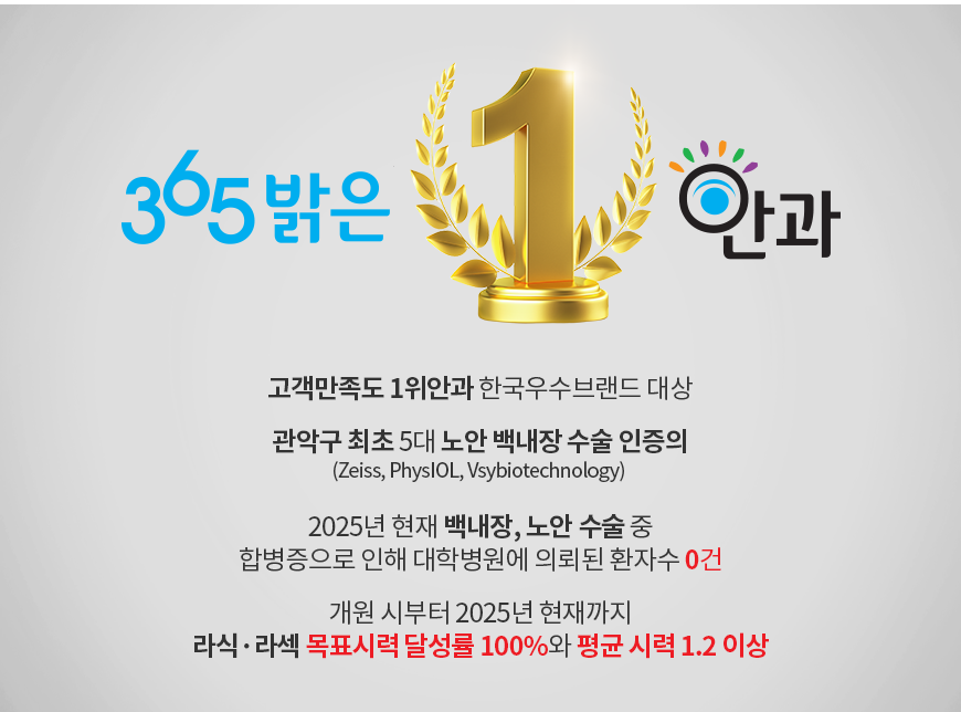 365밝은안과의 의료진의 목표는 단순합니다. 최상의 결과와 안전한 수술, 친절한 진료를 위해 항상 빈틈없이 노력하고 있습니다.