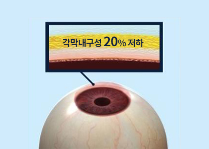수술 후 생길 수 있는 근시 퇴행이나 원추각막의 발생 가능성을 획기적으로 줄일 수 있으며 콜라겐 교차결합술은 미국 FDA 허가된 수술 방법으로 안정성도 확립되어 있습니다.
