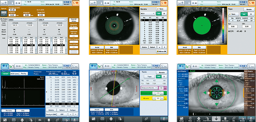 백내장 수술 후 좋은 시력을 위해서는 수술도 잘돼야하지만 안구에 삽입하는 인공수정체의 도수가 정확히 측정되어야 수술 후 안경 도움없이 생활이 가능합니다. OA2000은 Placido Ring에 최신 OCT swept source 방식이 더해진 최신 안구분석장비로 한번의 측정으로 각막굴절력, 안축장, 수정체 두께, 전방깊이, 수평각막직경, 각막두께, 동공크기 등의 정보를 종합적으로 취합하여 정확한 인공수정체 도수를 제공해줍니다. 또한 최신의 인공수정체 도수계산 공식인 Shammas PL, SRK T Double K, BARRETT universal II 등 11가지의 공식이 내장되어 있어 그 동안 부정확하게 측정됐던 라식, 라섹 수술 후 백내장 수술환자나 각막혼탁 등으로 불규칙한 각막을 가진 경우에도 정확한 백내장 수술이 가능합니다.