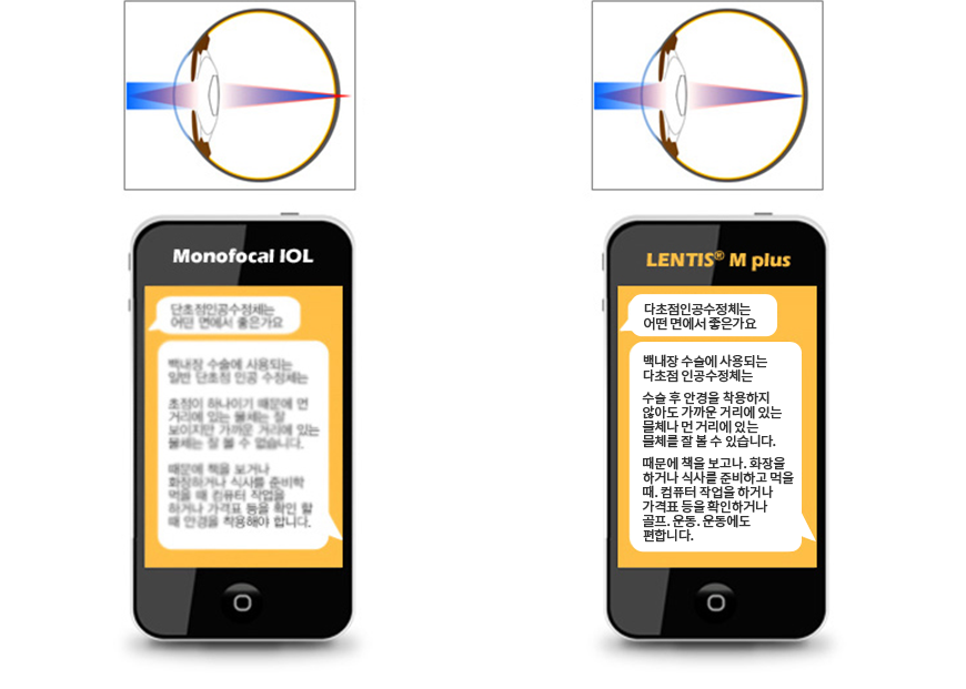 ※ 단초점인공수정체의 경우 상이 흐리게 보여 안경 (돋보기)를 착용하여야 합니다.