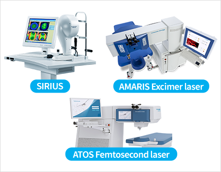 라식은 수술 후 통증, 오랜 회복기간, 수술 후 각막혼탁이나 근시 재발의 문제점을 보완한 수술방법입니다. ATOS 레이저를 이용하여 각막 절편이라는 구조물을 만들어 절편의 안쪽 부분만 엑시머 레이저를 조사하여 시력을 교정합니다. 레이저 조사 후에는 각막 절편을 다시 붙여주어 정상적인 각막 상피를 갖게 하여 수술 후 통증이 거의 없고 시력 회복이 빠르게 됩니다.