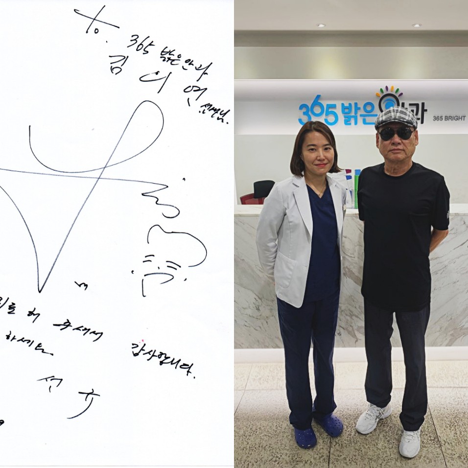 순수한 미소부터 살벌한 카리스마까지, 대세배우 진선규님의 아버님께서 본원 김의연 원장님 집도하에 백내장 수술을 한지 어느덧 2년이 되었습니다. 좋은시력 계속 유지중이라 기념사진까지 찍어주셨는데요! 두분다 너무 멋있으십니다^^b 진선규님께서 원장님께 감사하다며 사인까지 해주셨답니다~♥ 저희365밝은안과도 대새배우 진선규님 항상응원하겠습니다 :-)