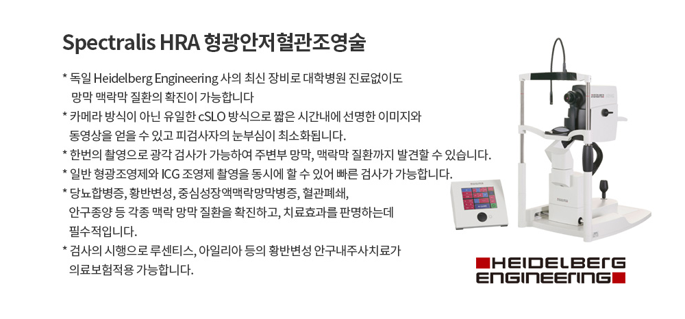 | 제목 | [ 365밝은안과 새 검사장비 도입 ] 망막 맥락막 질환 정확한 진단 가능한 ★ Spectralis HRA 형광안저혈관조영술 도입! ★ |